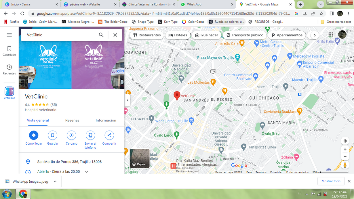 Actualmente cuenta con un local ubicado en: San Martín de Porres 386, Trujillo 13008.
